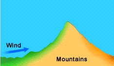 Uma massa de ar, saturada de água, e quente, é forçada a subir pela existência de um relevo (uma montanha), e arrefece (todos nós sabemos que no topo da serra está sempre mais frescote, não é verdade?), provocando as conhecidas chuvas orogénicas, de que todos ouvimos falar nalgum ponto da nossa vida...